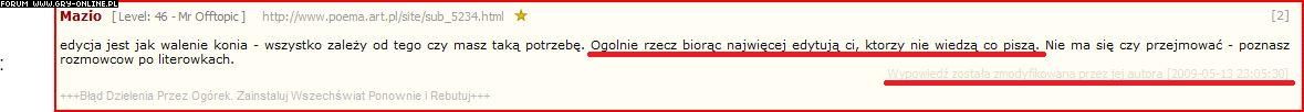 edytuje swoje posty tylko jezeli zauwaze literowki ;P