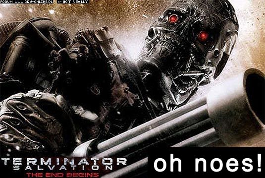 A tak wogóle to skoro już rozmawiamy o totalnych głupotach w filmie: czemu terminatory widzą wszystko na czerwono? Czemu informacje na "ekranie" wyświetlają im się PO ANGIELSKU? Na to nie ma odpowiedzi tak samo jak na wiele innych pytan zwiazanych z serią T.