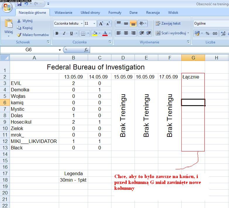 Jak zrobić, aby automatycznie mi podliczał wiersze i dodatkowo, aby jak mam kolumnę A1, B1, C1 itd. (robie listę obecności) na końcu mi podliczał, ale tak, że dopisuje następny dzień w kolumnie to policzanie jest na końcu