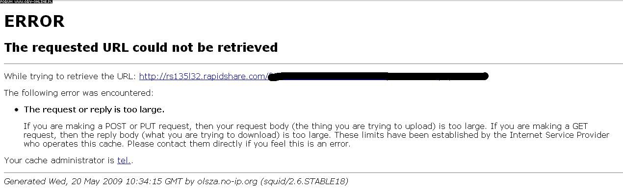 Problem z rapidshare, megaupload, hotlife etc. "the requested url could not be retrieved"