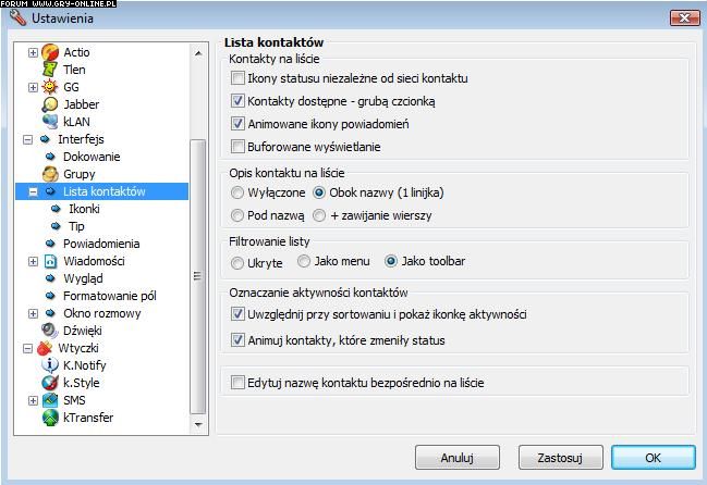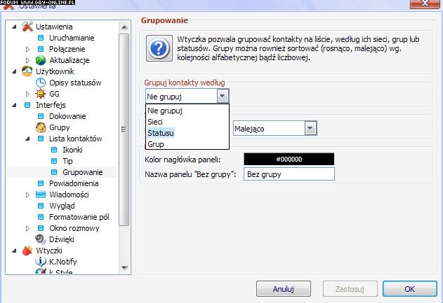 Ustawienia > lista kontaktów > grupowanie > grupuj kontakty wg statusu.
