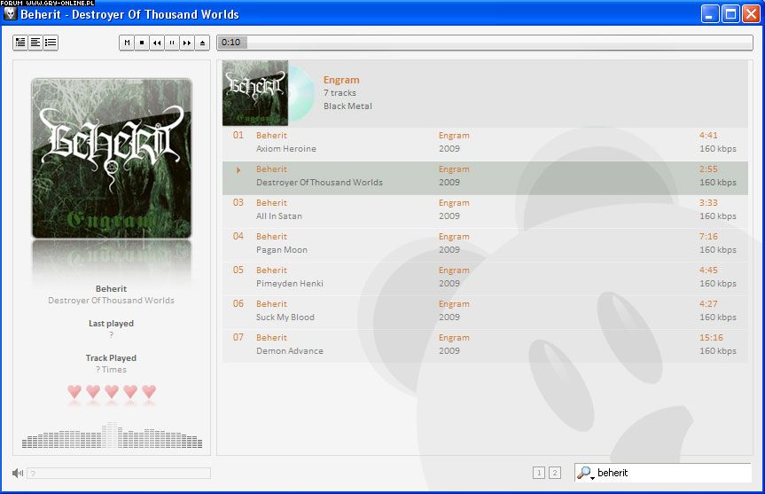 iTunes, ze względu na integrację z systemem i odtwarzaczem mp3 (włącznie ze sterowaniem muzyką puszczaną z komputera za pomocą iPod'a z każdego miejsca w domu), dobre wsparcie dla podcastów, możliwość współdzielenia biblioteki z innymi komputerami w sieci, podoba mi się sposób zarządzania biblioteką oraz Smart Playlisty, a także świetne dodatki typu CoverSutra (->). Może jest bardziej pamięciożerny niż taki Winamp czy Foobar, ale 60MB (włączony od kilku dni) pamięci to nie jest tak dużo znowu, szczególnie przy dzisiejszych pojemnościach pamięci operacyjnej liczonej w gigabajtach.