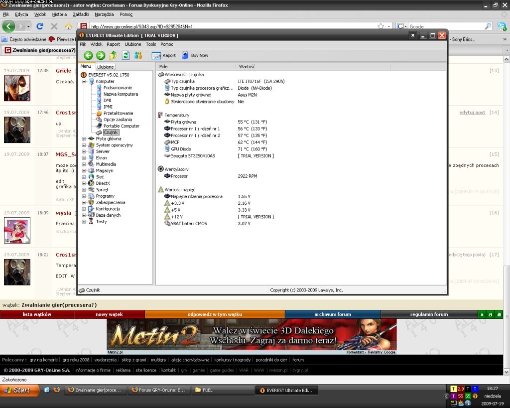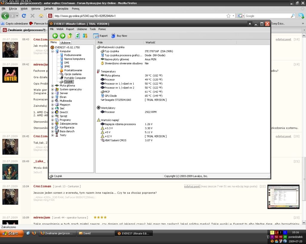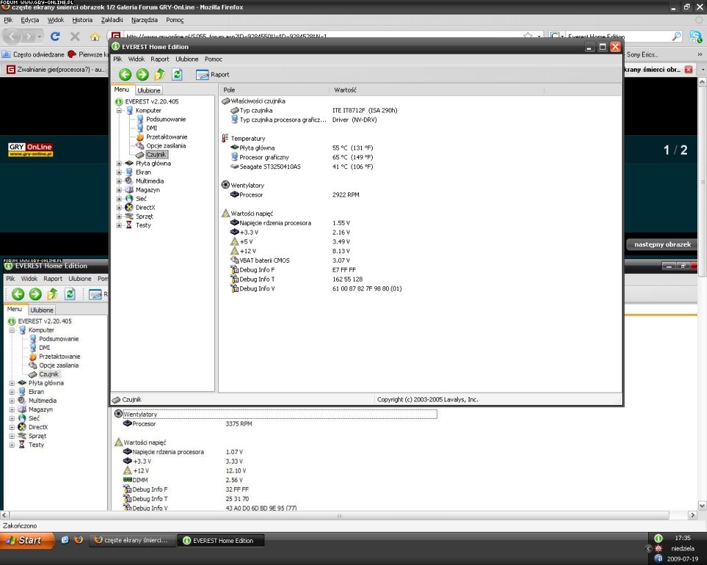 grafika 65C bez obciążania no i brakuje procesora w tym everescie moze jakas nowsza wersja? :)