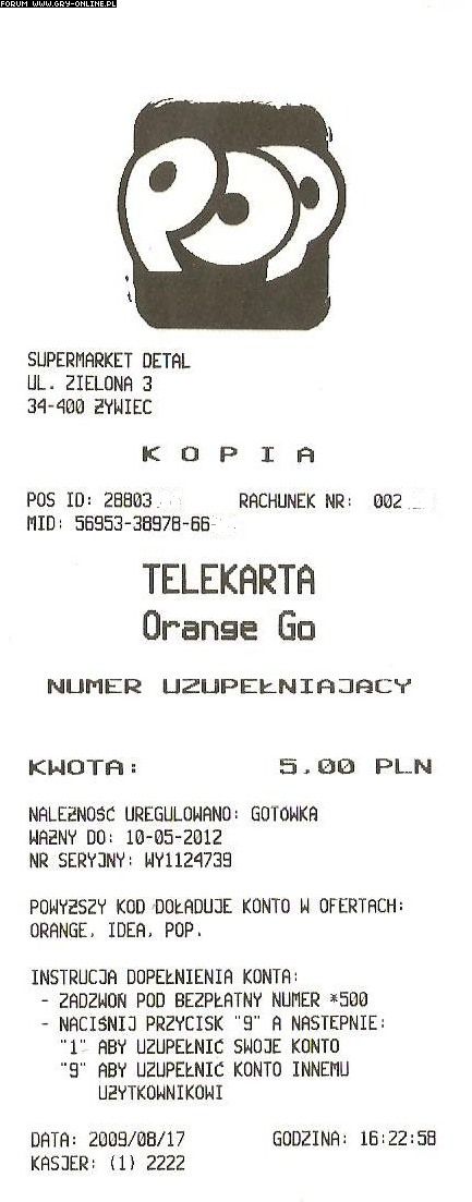 kilka minut temu kupiłem doładowanie z Orange w kiosku.