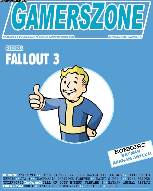 Jak wiadomo wszystkim, zaczęła się szkoła, więc ci, którzy zmuszeni są uczęszczać do niej, są nieszczęśliwi. Ale dzięki lekturze gamers-zone poprawi wam się humor. Ponadto, dzięki nam, mozecie wygrać najnowszą grę z "nietoperem" w roli głównej (więcej o konkursie w magazynie)! Jak wiadomo, ten numer jest numerem łączonym, wakacyjnym. Co w związku z tym? Więcej tekstów, więcej bonusów, po prostu więcej wszystkiego! Jeśli chodzi o recenzje, to mamy tu świeżego jeszcze Prototype'a, GTA IV, oraz Fallouta 3. Dowiecie się również co nieco o powstającej jeszcze, najnowszej grze studia Activision. Tak, to oczywiście Modern Warfare 2! Czy zapowiada się hit? Przeczytajcie. Oprócz tego znajdziecie jeszcze zapowiedz Batman: Arkham Asylum.