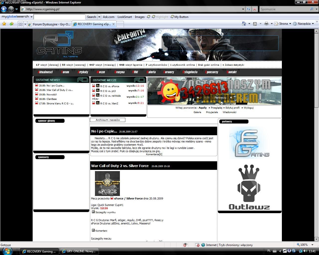 Jestem miłośnikiem Call of Duty 2 . Mój Klan założył własna strone www.rcgaming.pl więc prosze was. Każde wejście się liczy. Na Dowód ze niema tam wirusów dodaje screna