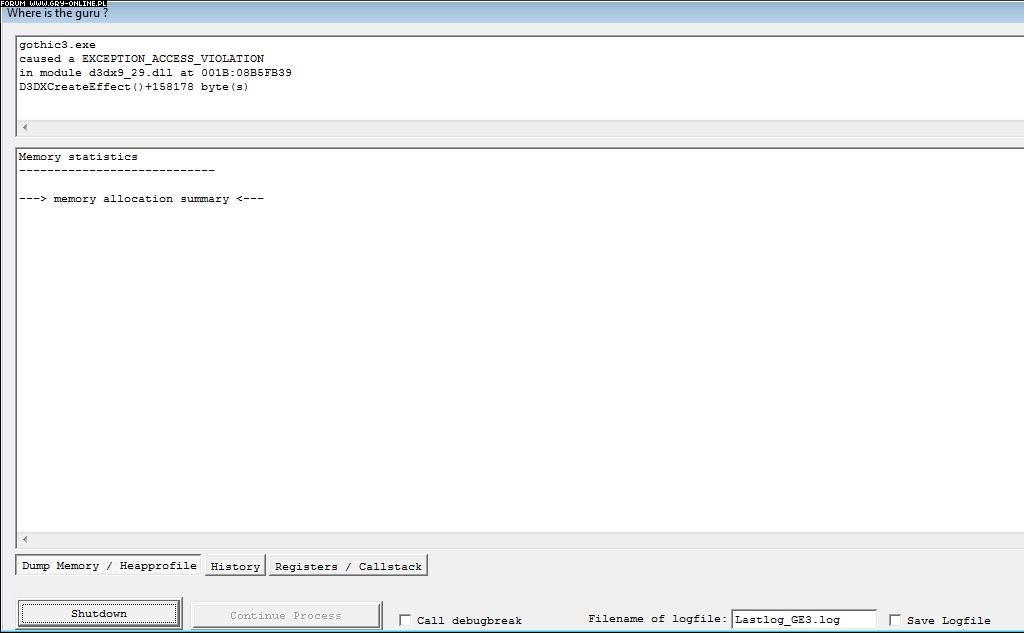 Witam. Podczas grania w Gothic 3 wyskakuje mi nieraz taki błąd ---->>>>>