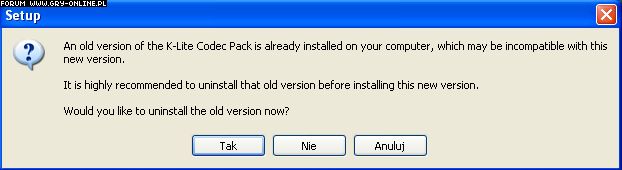 Stara wersja kaza lite kodek paka jest zainstalowana na twoim kompie, może ona byc niekompatybilna z nową.