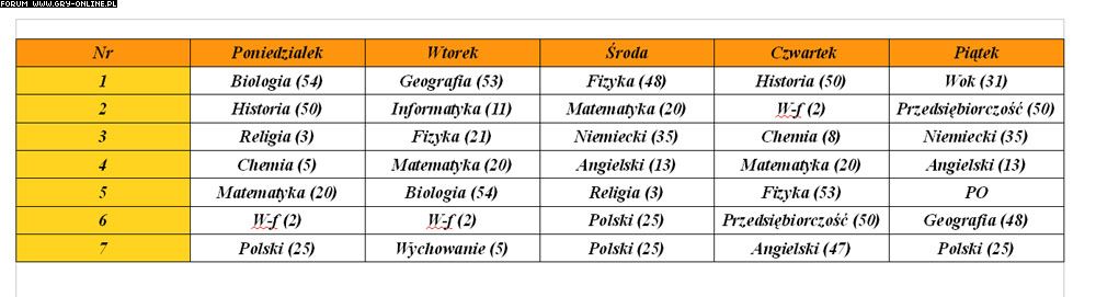 Plan lekcji oddziału 3B... jakbyśmy na wojnie jakiejś byli...