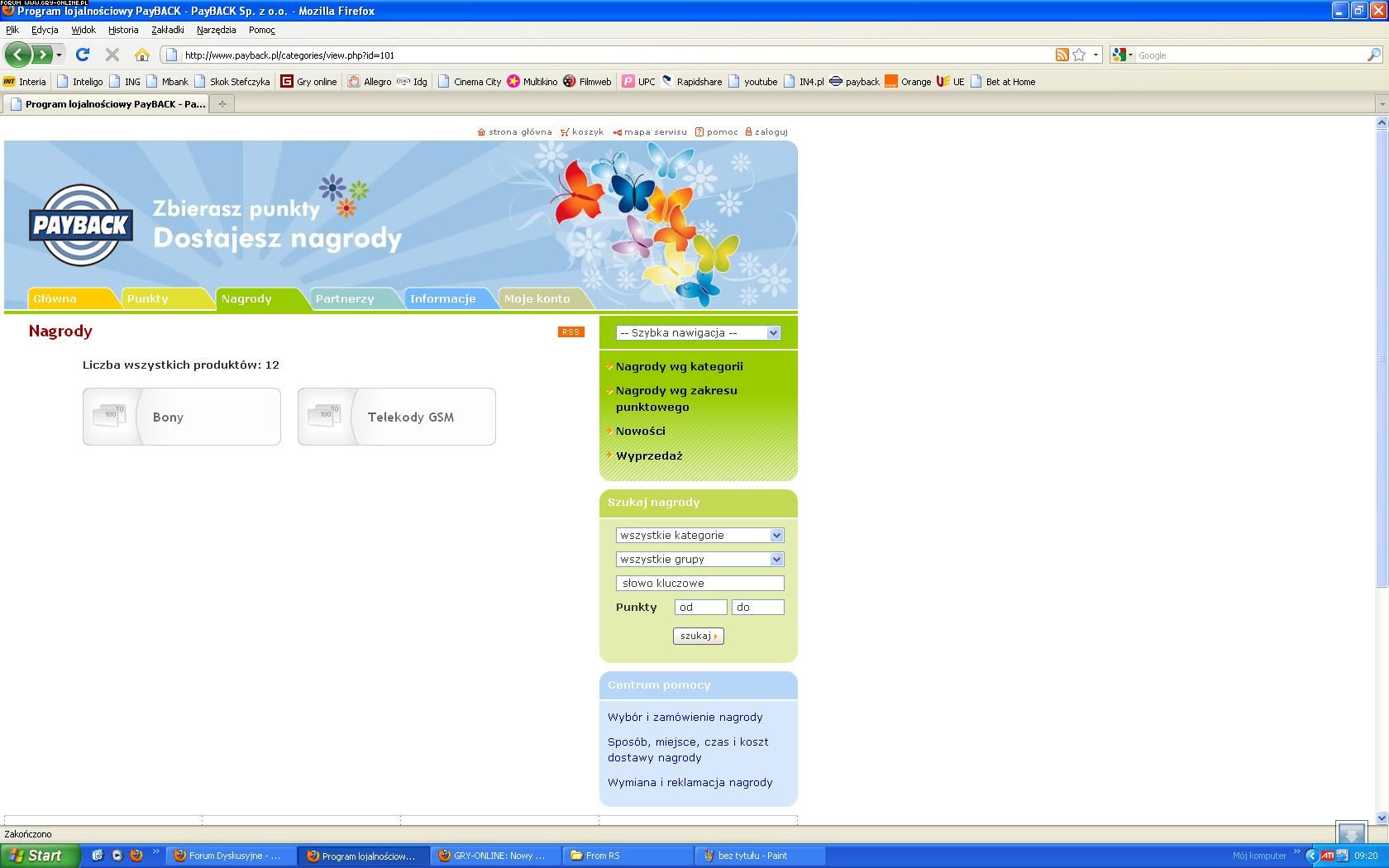 Od dawien dawna na allegro jest możliwość zbierania punktów w programie Payback. Trochę tych punktów uciułałem, więc myślę wybiorę sobie kilka gierek albo jakąś inną pierdołkę, loguję się na stronie Payback.pl i zamist setek nagród do wyboru tylko jakieś śmieszne bony!?! Orientuje się ktoś co się dzieje z tym serwisem? Czyżby "kryzys" dotarł i do nich?