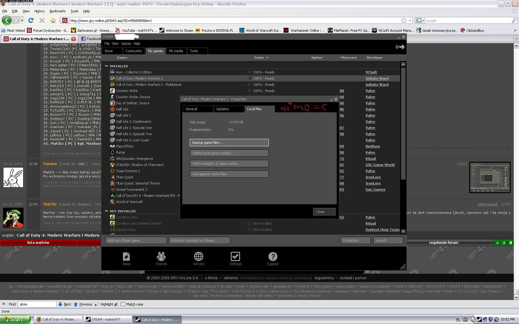No dobra, zainstalowałem CoDa MW2, włączył mi się Steam i tam w my games jest CoD MW2 i CoD MW2 multiplayer, no i tam mi idzie jakiś updating cały czas po 40-70kb/s. To mam być włączone i się updatować czy mogę to zastopawać?