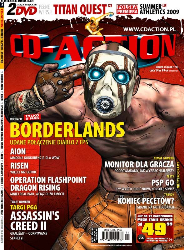 Mutant na okładce (plus byczy napis :P) zdradza, że Jako Pierwsi w Polsce (tadamm!) dorwaliśmy do recenzji coś, co można nazwać skrzyżowaniem Diablo z FPS-em, czyli Borderlands. Jeśli to porównanie wydaje ci się nieco na wyrost, to wiedz że mamy mocne argumenty by udowodnić, że nie wzięliśmy go sobie z Księżyca. Mocne i dużo, gdyż recenzja zajmuje solidne 5 stron.