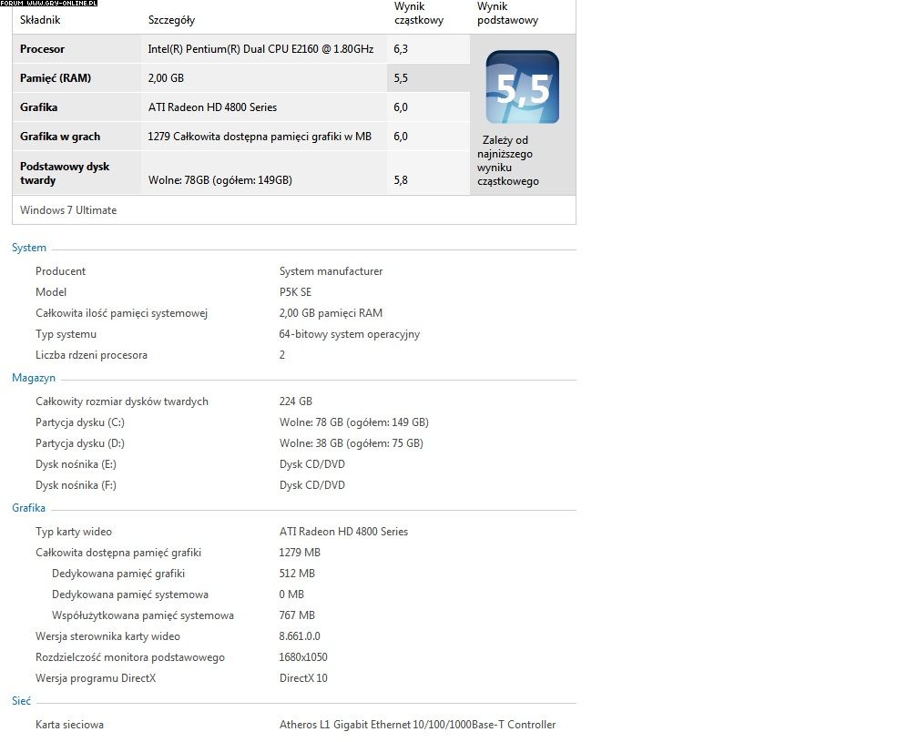 Reszta kompa to Dual Core e2160, Win 7 Ultimate. Ktoś ma jakiś pomysł?