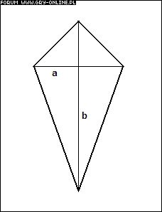 Pole deltoidu o przekątnych a i b jest równe połowie iloczynu przekątnych a i b: P=ab/2