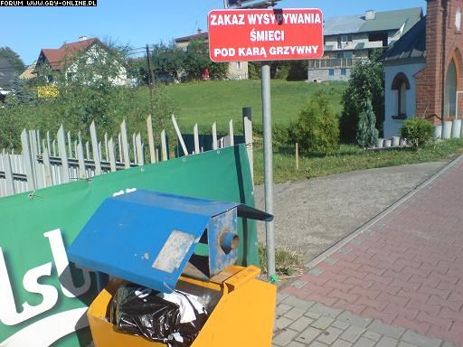 A co w tej fotce śmiesznego/dziwnego? Jest kosz na śmieci a za nim znak mówiący, że dalej w głąb osiedla domków nie wolno nic wywalać, czy tylko ja jestem wyprany z humoru takiego?