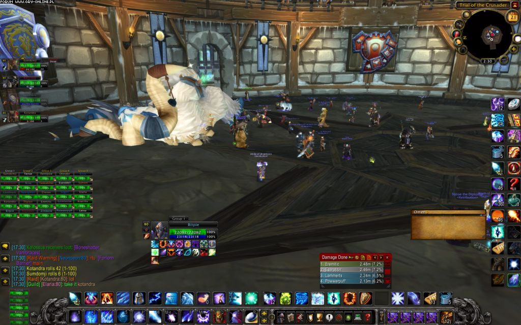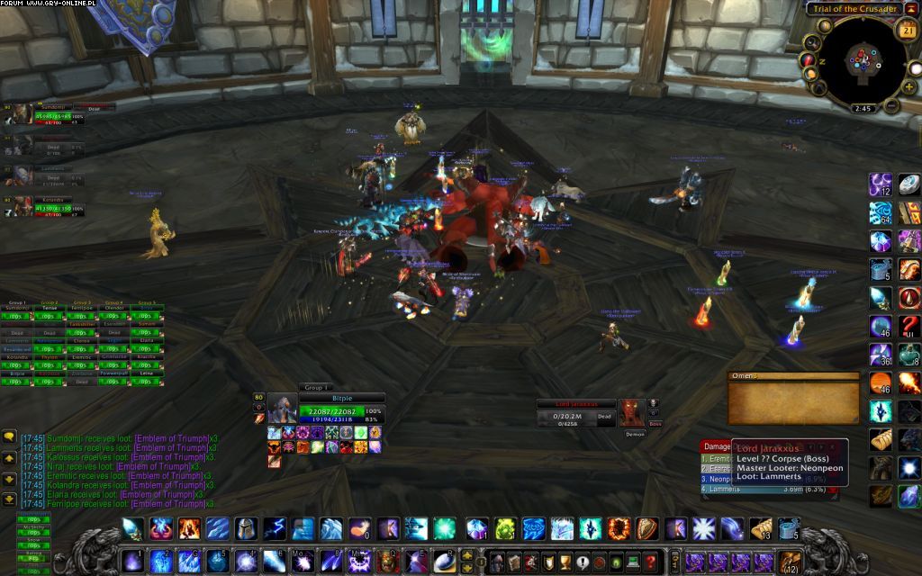 A ja wczoraj w pugu ICC25 wygrałem Frozen Bonespike. :D Niestety 2 boss okazał się dla wielu ludzi zbyt dużym wyzwaniem i na tym się skończyło. ;/