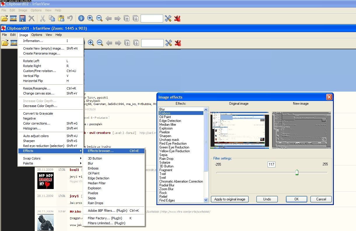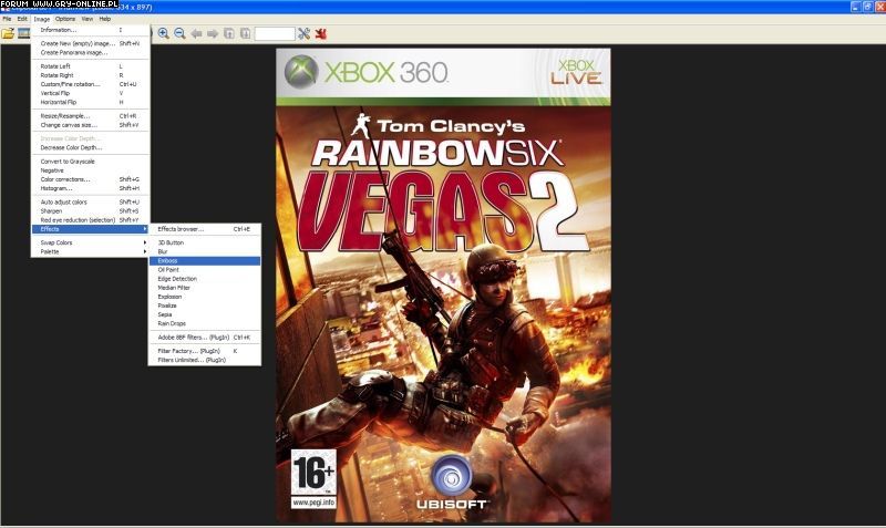 7. Na okładkę naszej zagadki nakładamy efekt Emboss w programie IrfanView aby uniknąć oszukiwania poprzez stronę tineye.