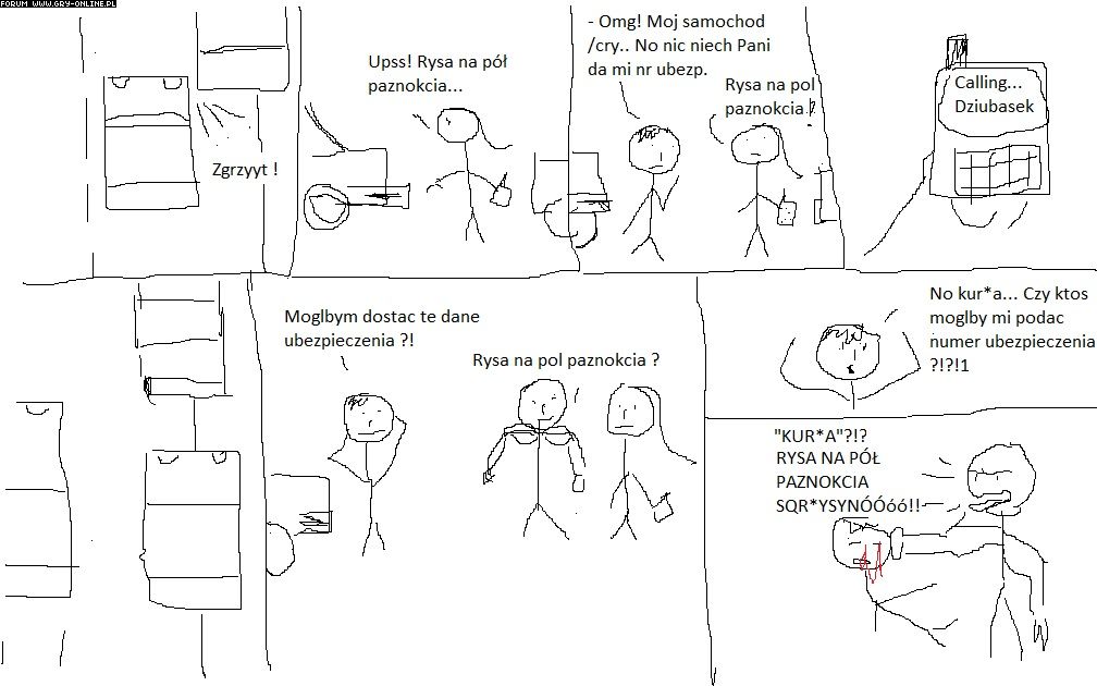 Koleś na nią nakrzyczał zbluzgał i to prawdziwie rzucał kurewkami I chciał wymusić odszkodowanie z PZU tylko po to aby zniżki poszły w piz&*.
