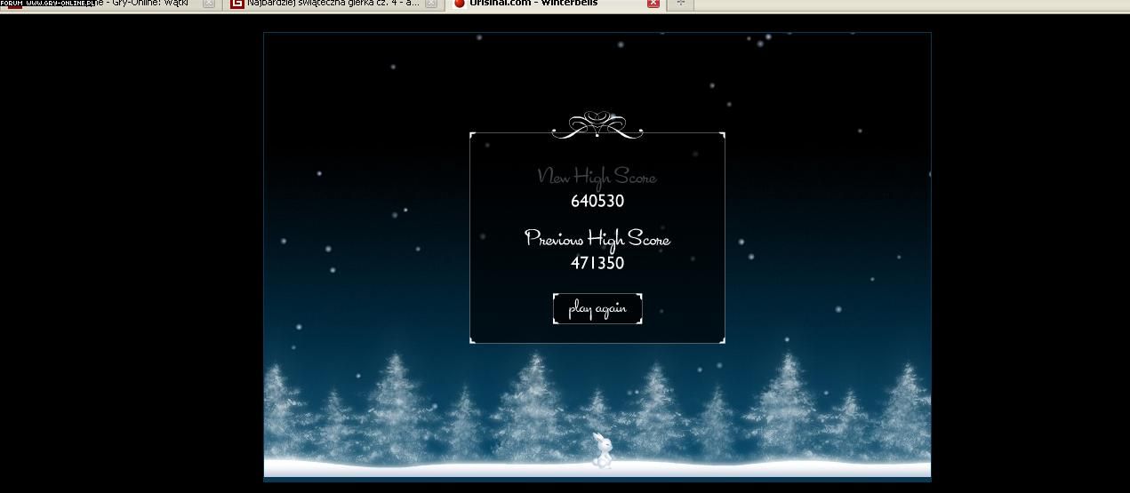 Wielu pamięta ją z lat ubiegłych, a ci co jej nie znają szybko załapią banalne zasady gry. Zapraszam do dzielenia się screenami ze swoimi rekordami, a przede wszystkim wsiąknięcia w ten świąteczny klimat i wsłuchania w cudowną muzykę:)