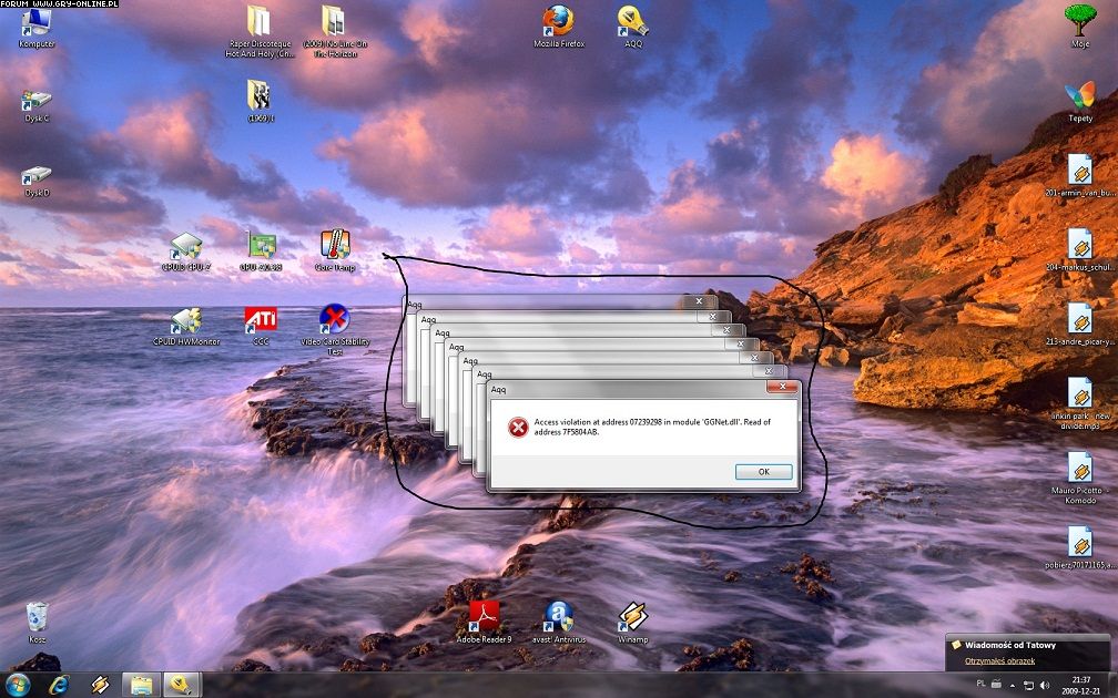 Masz pecha, akurat dzisiaj cudowni właściciele gg dodali sobie m&m'sy i wywala aqq bo nikt nie przewidział takich jaj. Póki co wyłączyłem wyświetlanie emotek i jakoś dzierży. Ale przez najbliższe kilka dni raczej nic się nie zmieni. Problem zgłosiło kilka osób na forum aqq, ale raczej szybko tego nie naprawią.