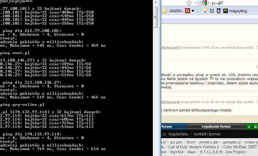 Ja może trochę nie na temat, ale jak wy sprawdzacie ping przez cmd? Ja mam UPC, więc raczej tu nie pomogę.