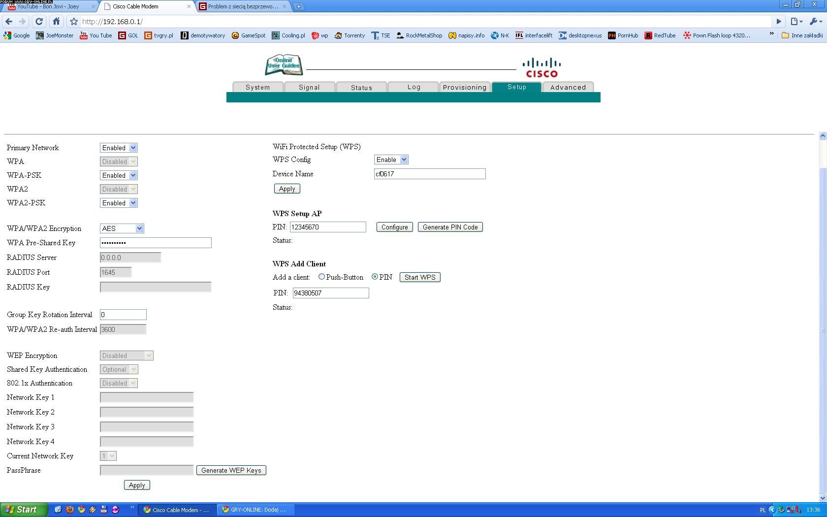 Nie mogę podłączyć się do routera. Grzebałem trochę w ustawieniach ale nic nie dało oprócz tego że router jest teraz widoczny. Przy próbie podłączenie prosi mnie o WPA Pre-Shared Key, wpisuje taki jaki przed chwilą ustawiłem i dupa. Ten sam problem z laptopem nie można się podłączyć, a przez kabel wszystko jest ok.