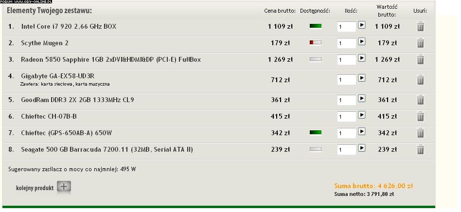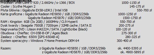 Składam komputer. Konfiguracja jak na obrazku. Zastanawiam się nad grafiką. Czy lepiej wybrać Radeona 5850 czy 5870? Czy warto dokładać? Jak wygląda wydajność w kontekście obu modeli? Może macie propozycje na czym można by jeszcze zaoszczędzić? Taki zasilacz nie będzie za mocny? Jakieś inne uwagi?
