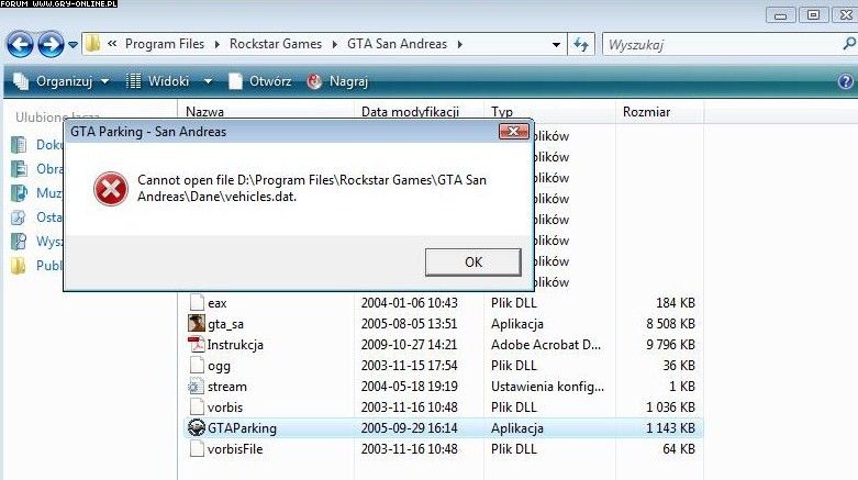 Przeszedłem GTA SA i mnie już nudzi więc chce wgrać jakieś mody ale co mi się pokazuje gdy włączam GTA Parking wiecie co mogę zrobić ?