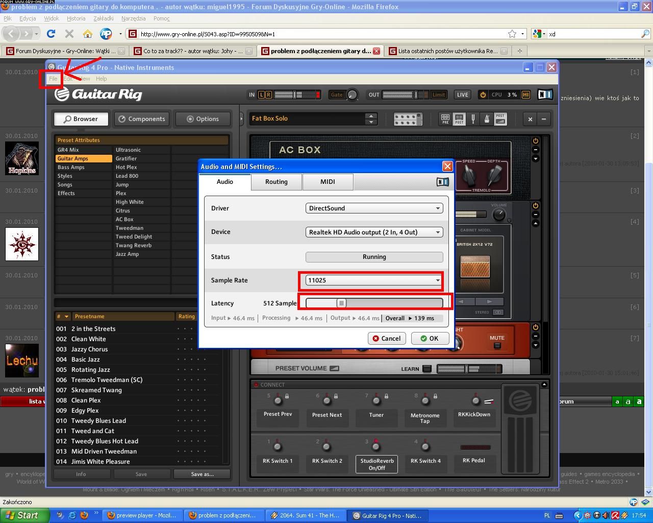 Witam Gdy podłączam gitarę do komputera (washburn WI14) jest szum i słabe brzmienie gitary (słychać ją wyraźnie gdy pod głośnie ale w tedy szum jest nie do zniesienia) wie ktoś jak to zlikwidować ?? Mam od kumpla program Guitar Rig 4 i przez niego gram .