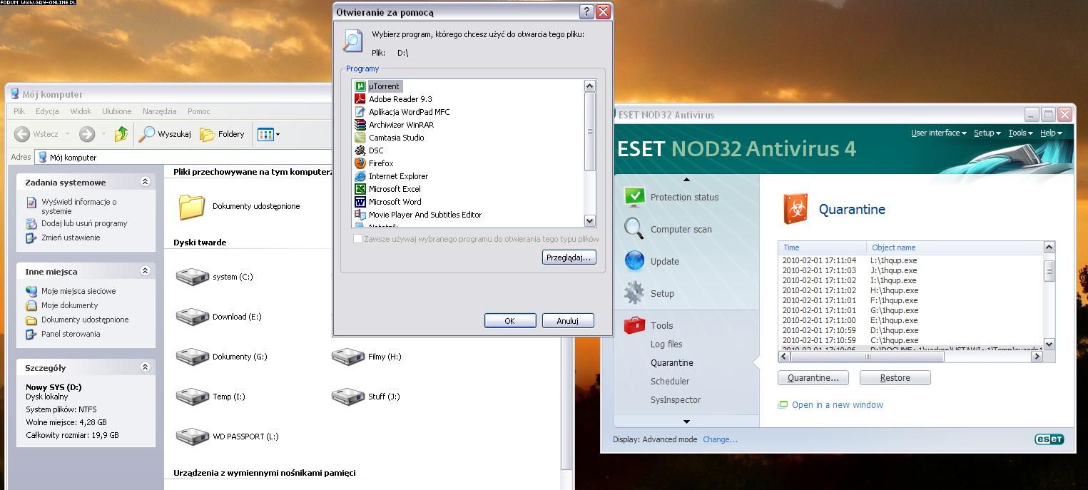 NOD32 znalazł na wszystkich dyskach jakieś dziwne execi i poinformował mnie o ich usunięciu. Po reboocie systemu klikając w którykolwiek dysk wyskakuje mi okienko jak na screenie (tj. ktorym pogramem chcesz otworzyc). Z dostępem do dysków nie ma problemu, jak wybiore IE to otwiera normalnie, jak sobie odpale Total Commandera i przegladam dyski to też jest wszystko w porządku.