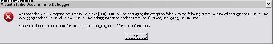 Nie pomaga. Zamiast okienka gdzie mam do wyboru albo debugować albo nie, pojawia się okienko takie ->