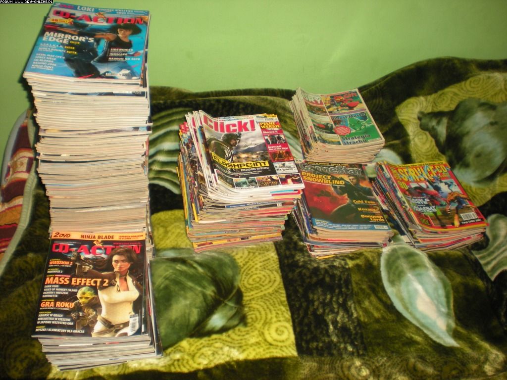 To moja kolekcja, licząc gazety tylko z tematyką gier, to najwięcej mam CD-ACTION i CLICK-a, paręnaście numerów Komputer Świat Gry i PLAY-a i po kilka numerów Gamblera, Secret Service, GameStara i Świata Gier Komputerowych