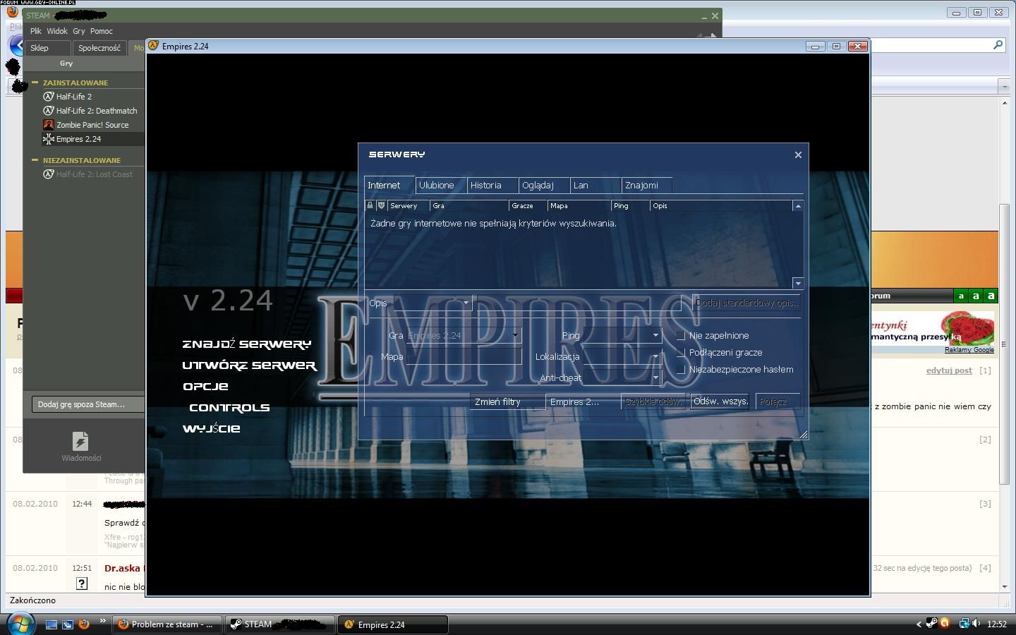 mam taki problem miałem format kompa i wszystko zainstalowałem poprawnie czyli cały steam ale kiedy ściągnąłem mod do hl2 włącza się ale nie wyszukuje listy serwerów tak samo jest z zombie panic nie wiem czy coś mam z netem czy co